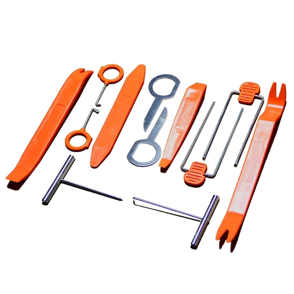 Introducing our Universal Trim and Stereo Removal Tool Kit – the perfect companion for a seamless installation of our CarPlay and Android Auto kits. This comprehensive kit includes all the necessary trim removal tools and keys, ensuring a hassle-free integration into your vehicle's dashboard.