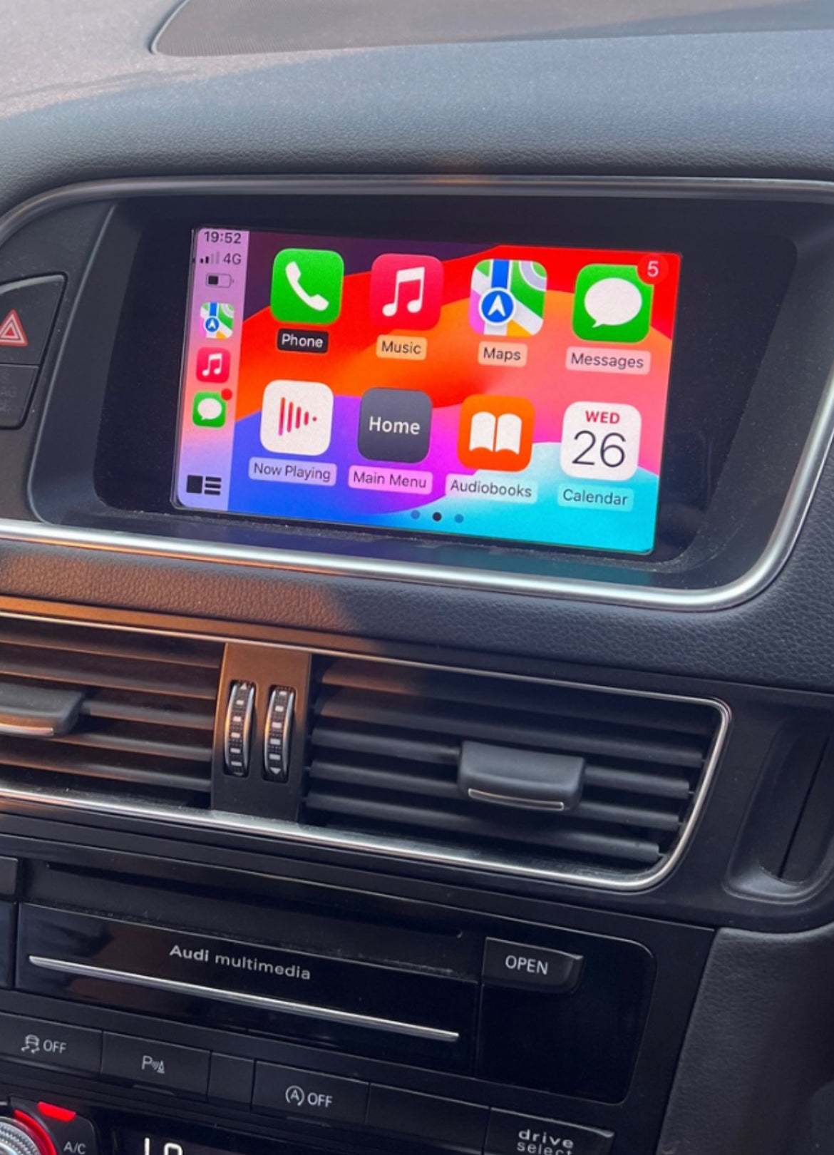 Modernise your Audi without replacing the original screen. Our CarPlay Retrofit Unit adds wireless and wired Apple CarPlay and Android Auto to your factory MMI 3G system. Installed discreetly behind the dash, it lets you switch between your original interface and CarPlay/Android Auto seamlessly.