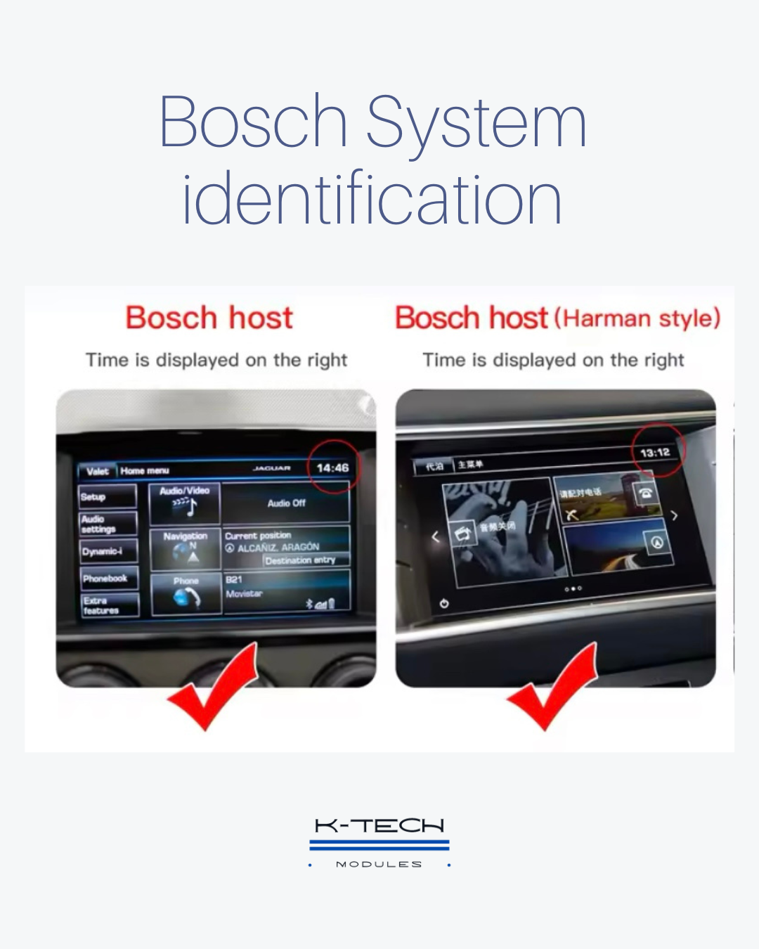 It is important to ensure your vehicle has a Bosch head unit before purchase. Refer to the product images for guidance on identifying your system.